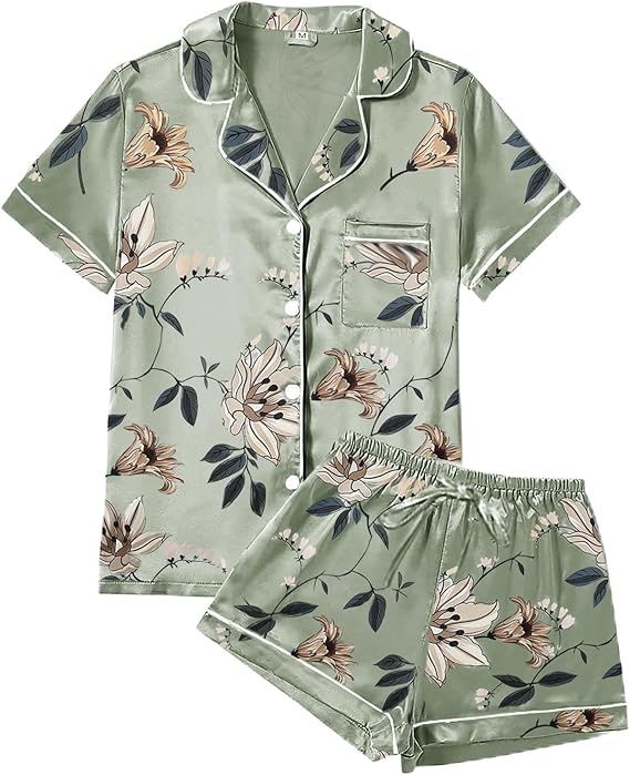 These Two Piece Pajama Set featuring classic sleepwear style. Short sleeve sleepwear top and pajama shorts set. Premium ultra soft silk satin material in very high quality and this sleep set with superior stitching and perfectly-lined hems. Breathable and Comfy sleepwear set. Wash Care: Hand wash separately in cold water is recommended. Pajamas shorts for women with soft elastic waist that fits for any body size and makes relaxing as comfort as possible. This summer pjs for women Perfect for sleepwear, night wear or loungewear. Better, Soft and Smoother to the touch and easy on the skin. Classic pajama set are perfect for pajama parties, bridal, dorm rooms, fun family pictures. And this pajama shorts set with high quality is also great for as a birthday, Valentine’s Day, Christmas, New Year, Wedding and any other holiday gift for your mother, wife, daughter and friends.
